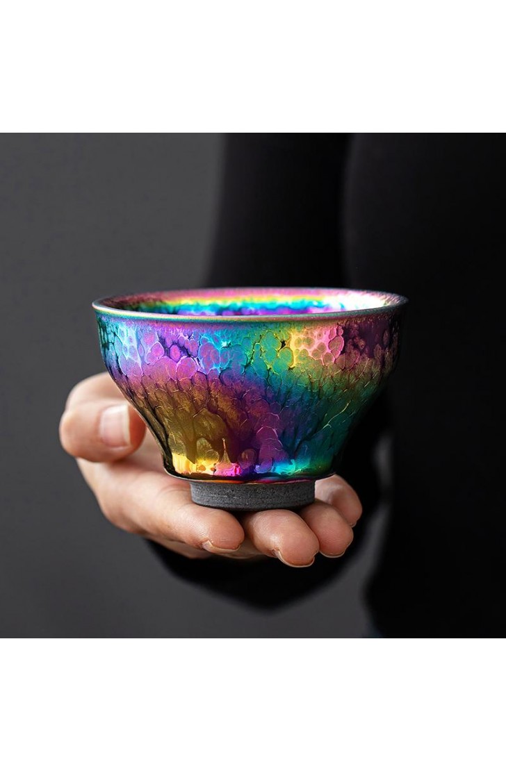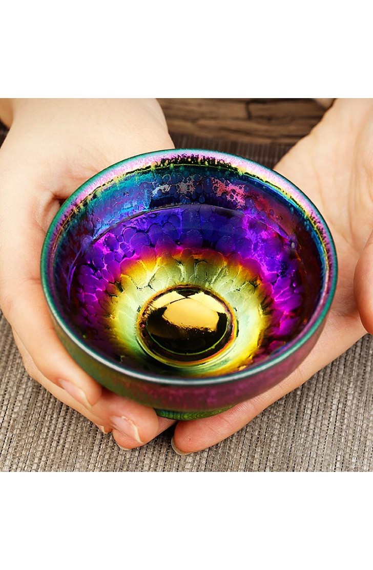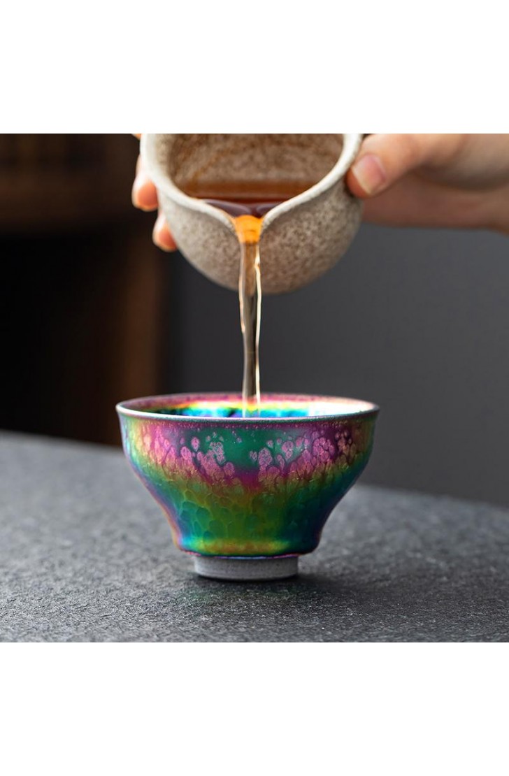 Elevate your tea ritual with the Colorful Yaobian Jian Ware Tea Bowl—a masterpiece of Chinese intangible cultural heritage, handcrafted from Jianyang’s original mineral clay. This 130ml teacup features stunning rainbow-hued Yaobian glaze, where each piece boasts a one-of-a-kind iridescent pattern formed by high-temperature kiln transformation.