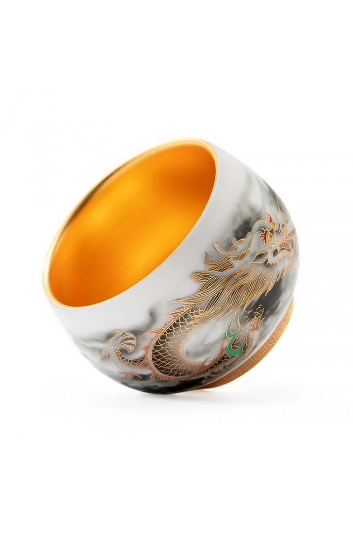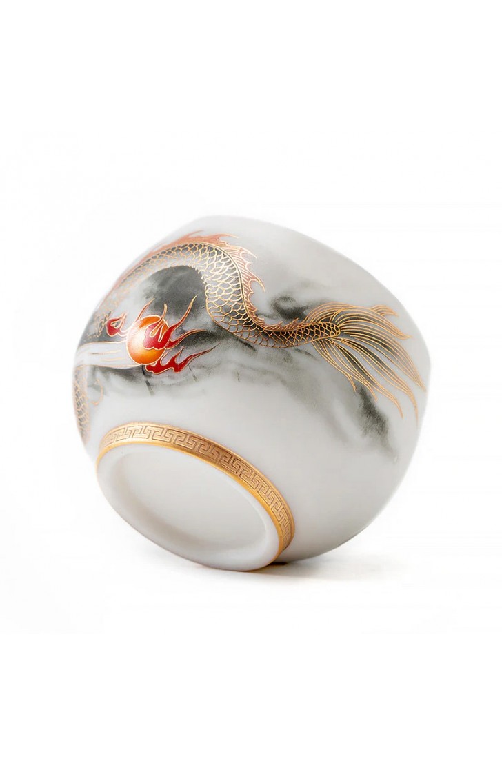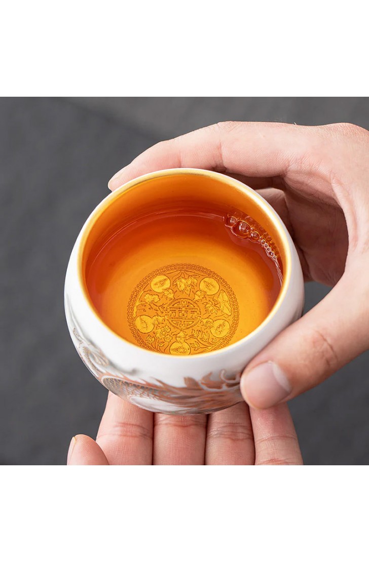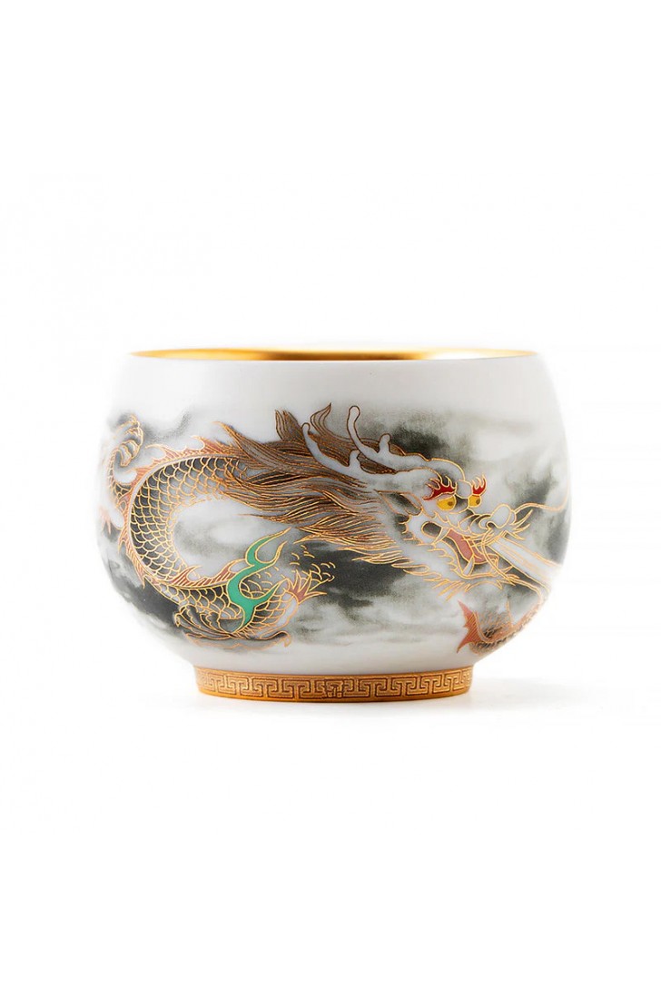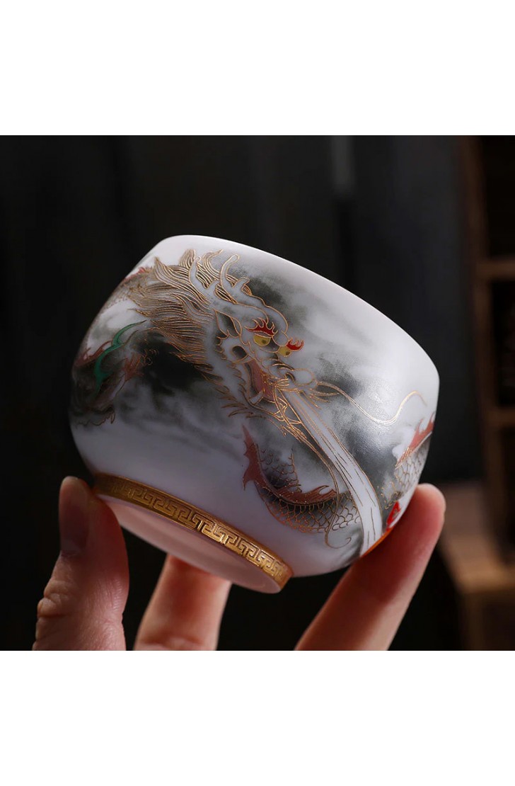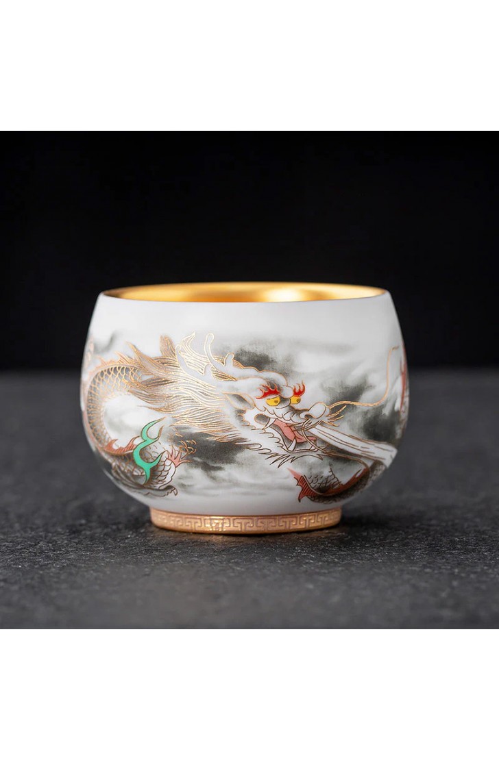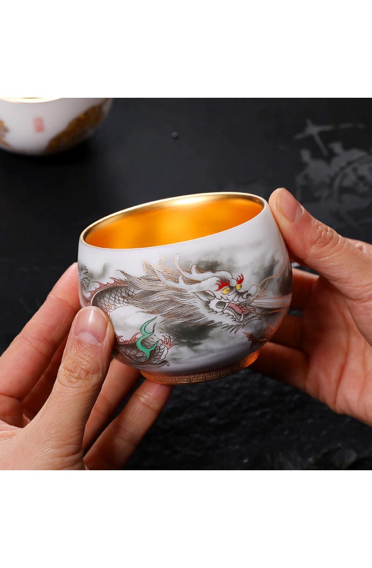 Golden Dragon Gilded Yangzhi Jade Porcelain Tea Cup